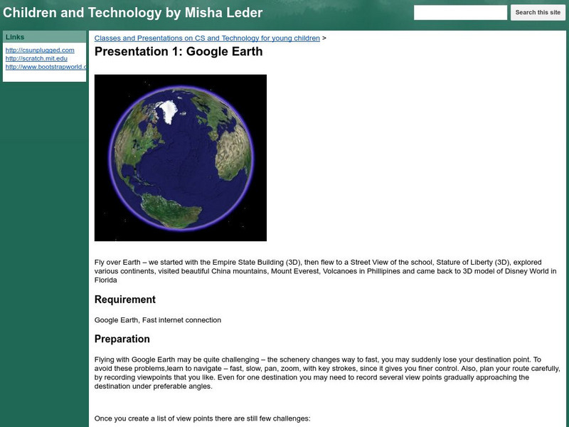 Lesson where middle schoolers utilize Google Maps and Google Earth to create a three mile running course from their houses, addressing any safety concerns that arise (large intersections, availability of sidewalks, etc.). Detailed...