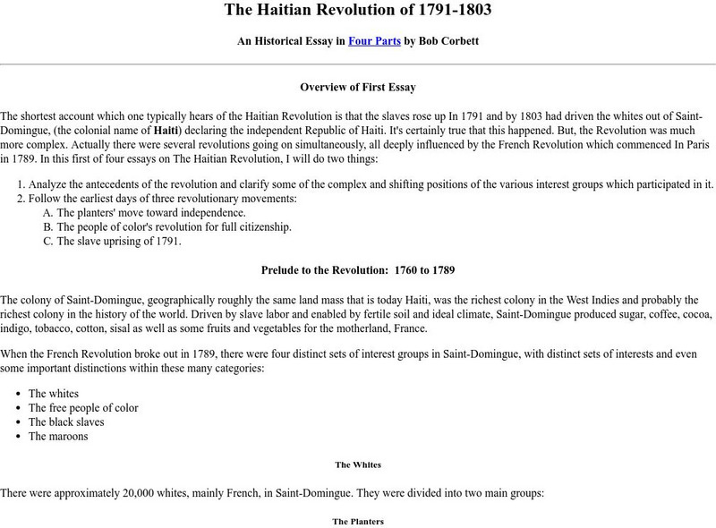 This is the first of four linked pages presenting a comprehensive essay on the Haitian Revolution.