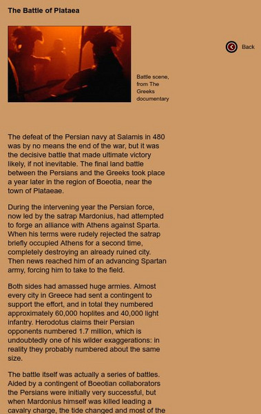 Background and description of the Battle of Plataea. Does a good job of discussing the different versions of the battle presented by historians.
