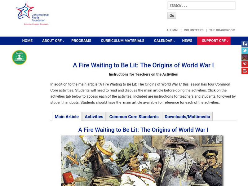 Constitutional Rights Foundation: A Fire Waiting to Be Lit: The Origins of World War I