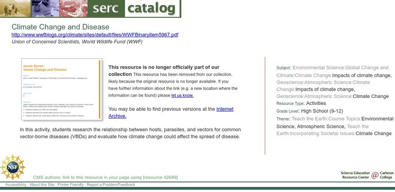 Students research the relationship between hosts, parasites, and vectors for common vector-borne diseases and evaluate how climate change could affect the spread of disease.