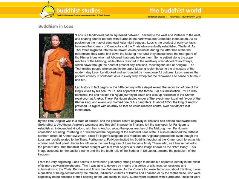 A detailed history of Buddhism in Laos. Provides information on important people and dates as well as doctrines.