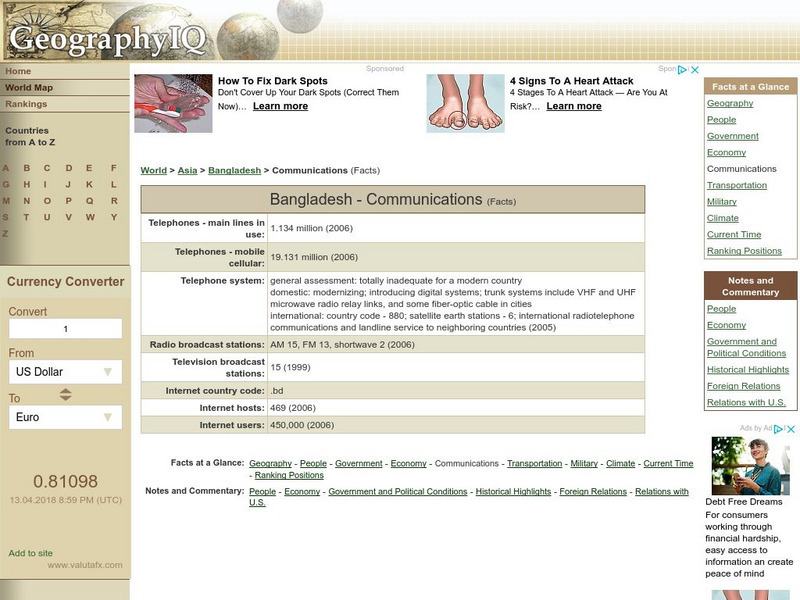 If you're doing a research paper on Bangladesh, this is a great place to begin. Has information about the history, people, geography, climate, economy, and more. Click on the map image to get more details and an enlarged view.
