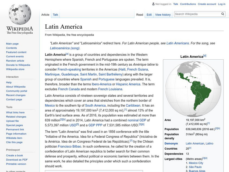 Article on Latin America that provides a great overview of the region. Discussions include history, religion, culture, links to information about each of the countries, and more.