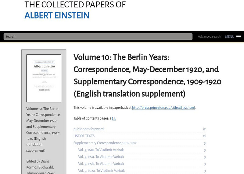 A publication of Albert Einstein's written legacy presented in the original language version with in-depth English language annotation readers can access. This volume focuses on his correspondence from May-December in 1920, and...