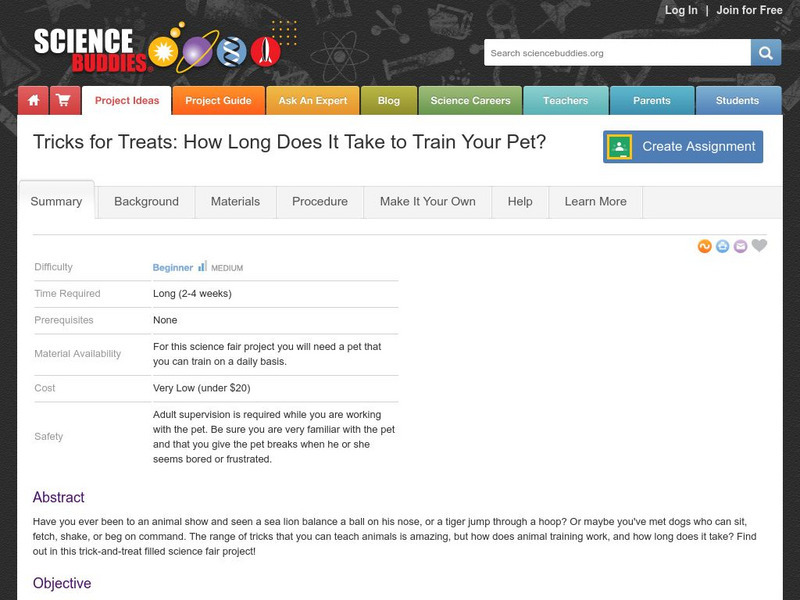 Science Buddies: Tricks for Treats: How Long Does It Take to Train Your Pet?