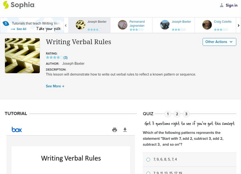 This lesson will demonstrate how to write out verbal rules to reflect a known pattern or sequence.