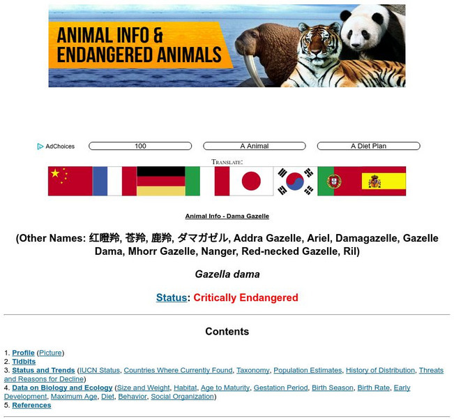This site contains a variety of information on the dama gazelle. Detailed statistics and trends on this endangered species.