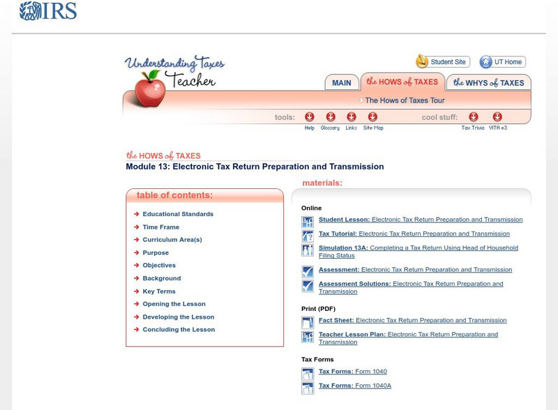 This lesson plan will help young scholars understand the electronic preparation and transmission of tax returns.