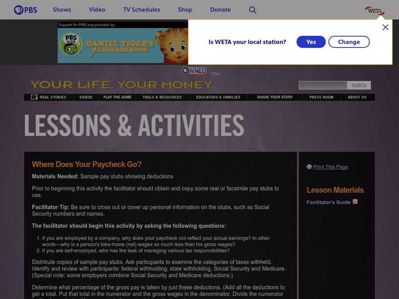 Using real copies of pay stubs, students will examine them to see where all the deductions go. An extensive teacher's guide can be downloaded - the lessons are also intended for other sections of this website.