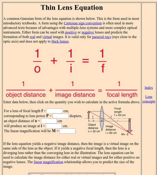 Georgia State University: Hyper Physics: Thin Lens Equation