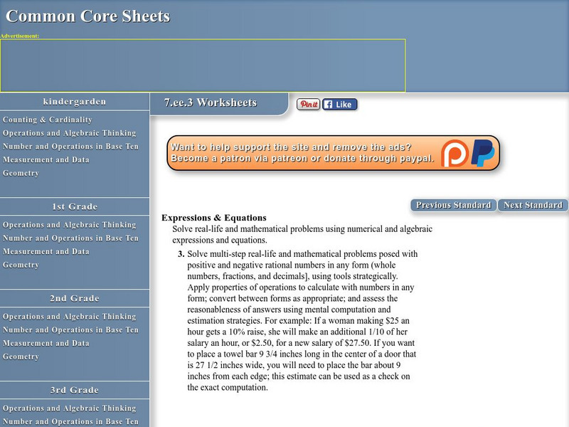 Common Core Sheets: Expressions & Equations 7.ee.3 Worksheets