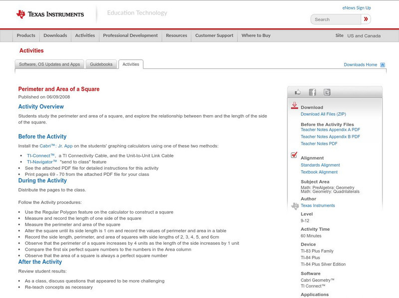 Texas Instruments: Perimeter and Area of a Square