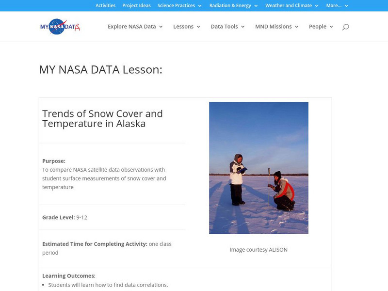 This lesson plan allows students to use NASA satellite data observations with surface measurements of snow in Alaska. Students will be able to make scientific predictions, find data correlations, and learn about data collection methods.