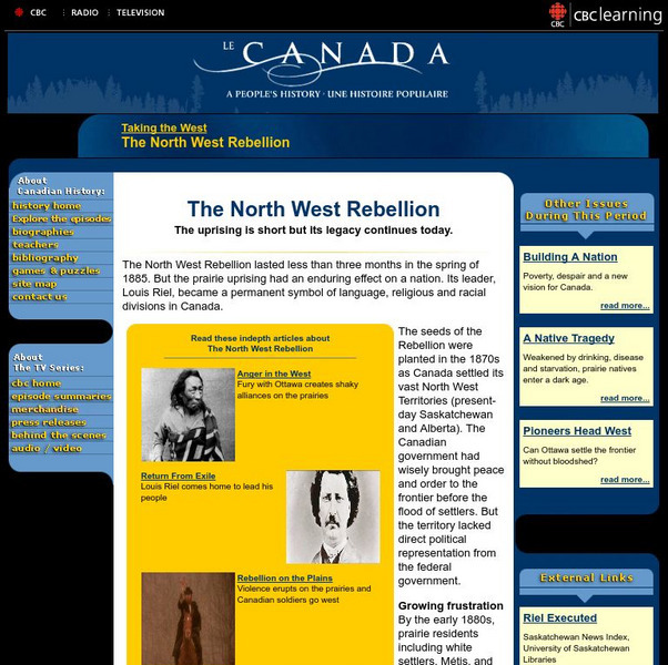 Cbc.ca: Taking the West: The North West Rebellion