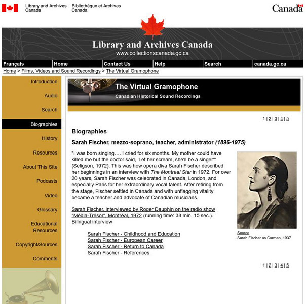 Library and Archives Canada: Sarah Fischer, Mezzo Soprano (1896 1975)