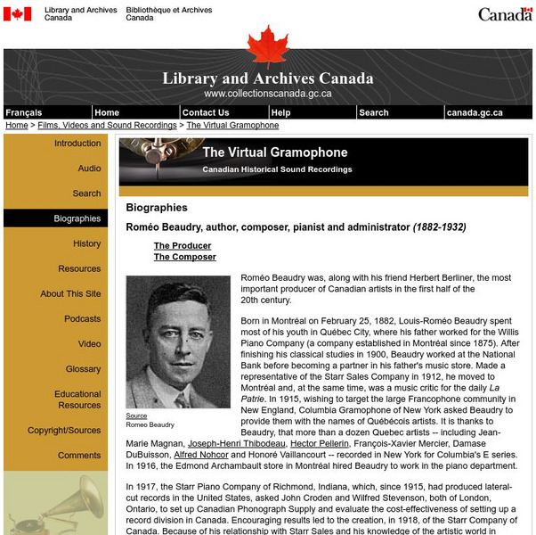 Library and Archives Canada: Romeo Beaudry, Producer (1882 1932)