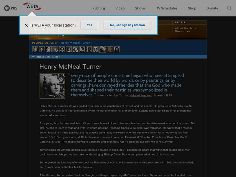 This PBS series page for This Far by Faith profiles Civil War-era African Methodist Episcopalian churchman Henry McNeal Turner.