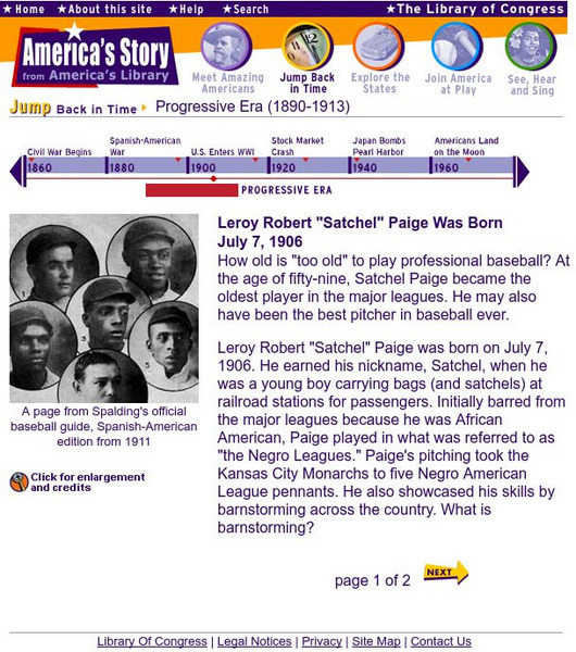 Loc: America's Story: Leroy Robert "Satchel" Paige