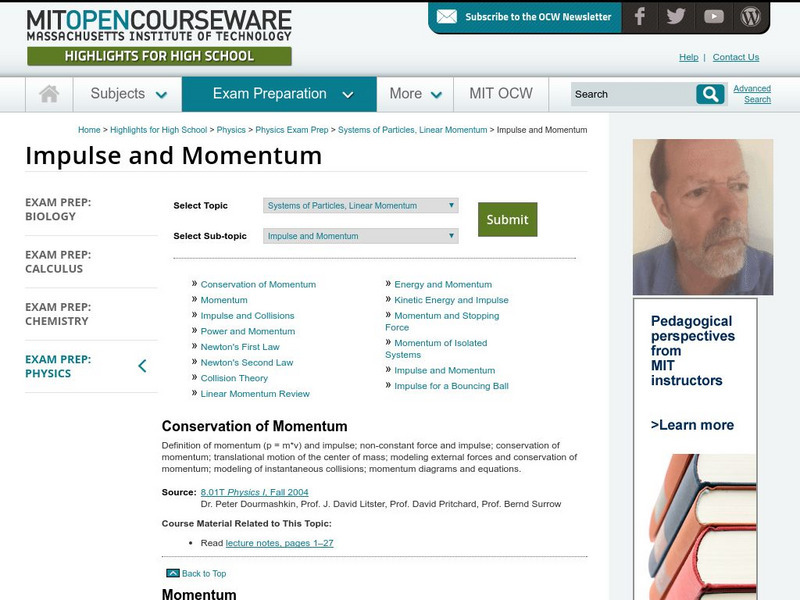 Mit: Open Course Ware: Conservation of Linear Momentum and Collisions