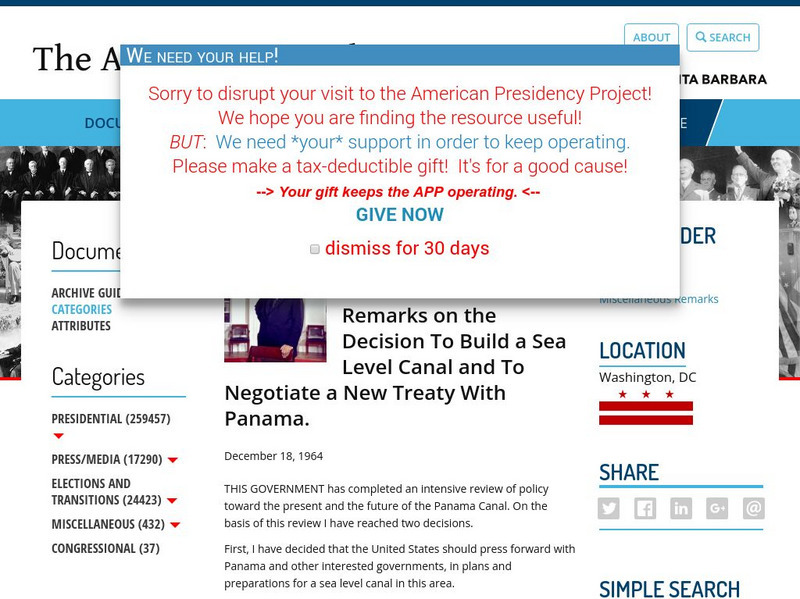 American Presidency Project: Remarks on the Decision to Build a Sea Level Canal