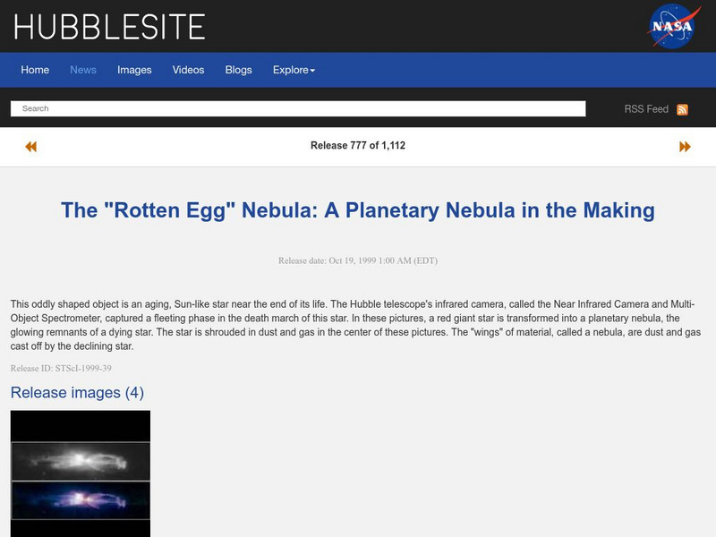 This NASA Hubblesite page provides basic information about and photographs of the "Rotten Egg" nebula.