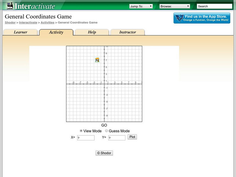 This applet allows students to practice plotting points and identifying ordered pairs on a coordinate plane. The learning resource consists of the activity, instructions, instructor notes, and additional resources.