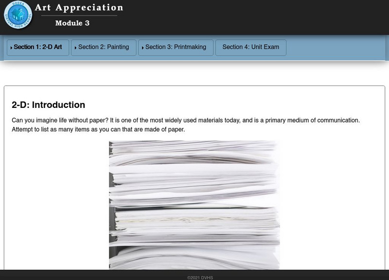 This fourth unit of a course on Art Appreciation looks at different forms of two-dimensional art. Students learn about the invention of paper, early perceptions of drawing, how hatching and cross-hatching were used by Michelangelo,...