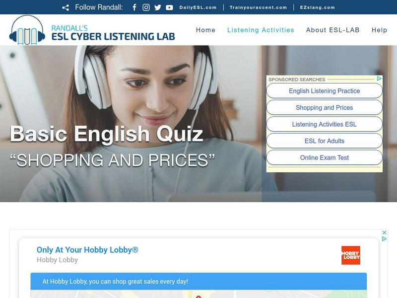 Esl Cyber Listening Lab: Basic English Quiz: Shopping and Prices
