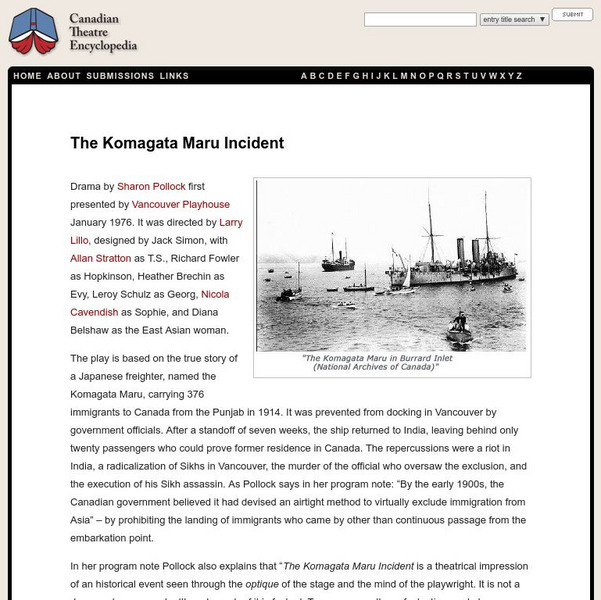 Canadian Theatre Encyclopedia: The Komagata Maru Incident