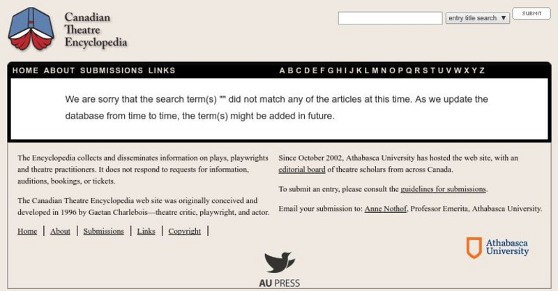 Canadian Theatre Encyclopedia: History of Canadian Theatre