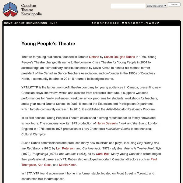 Canadian Theatre Encyclopedia: Lorriane Kimsa Theatre for Young People
