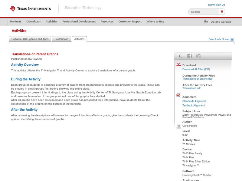 This activity utilizes the TI-Navigator and Activity Center to explore translations of a parent graph.