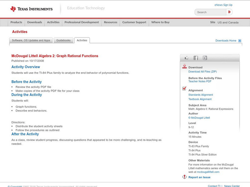 Texas Instruments: Mc Dougal Littell Algebra 2: Graph Rational Functions