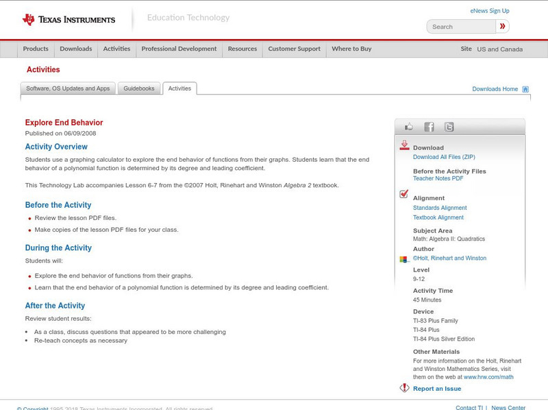 Texas Instruments: Mc Dougal Littell: End Behavior of Polynomial Functions