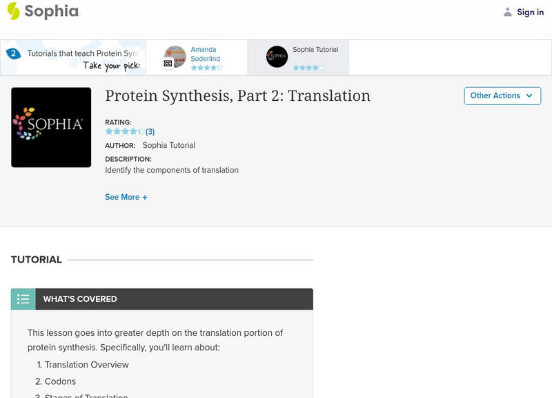 This lesson goes into greater depth on the translation portion of protein synthesis. Specifically, it covers the basics of translation, codons, and stages of translation - initiation and elongation and termination.