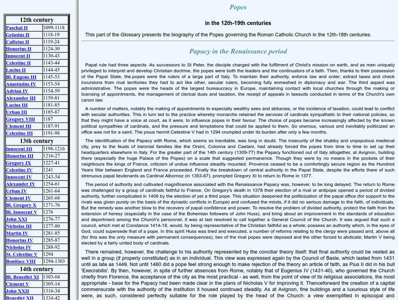 Web Gallery of Art: Popes in the 12th 18th Centuries
