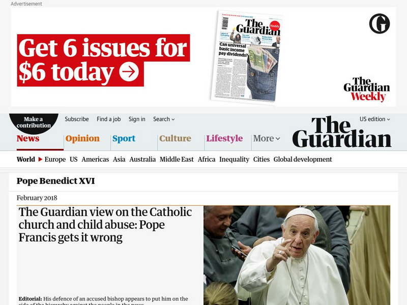 Section of the Guardian website devoted to Pope Benedict XVI. Contains news and opinion articles, videos, and links to other useful websites.