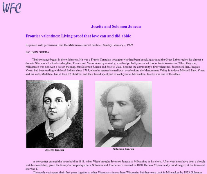 Josette and Solomon Juneau were among the first settlers in the Milwaukee area and helped to shape its early years. This is a short biography of the couple, who were reportedly very attached to each other.