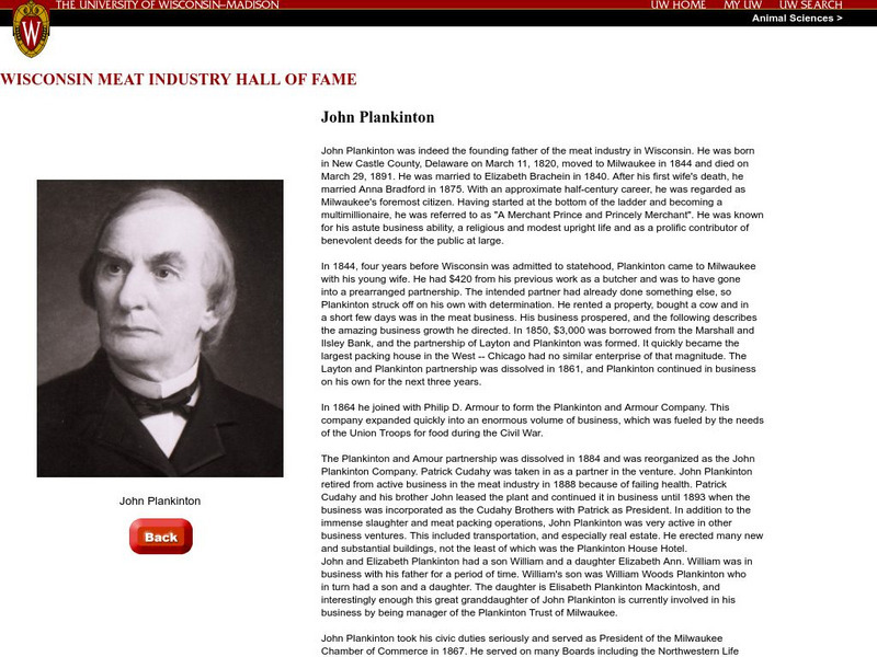 Univ. Of Wisconsin: Wisconsin Meat Industry Hall of Fame: John Plankinton