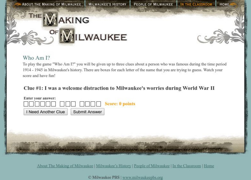 'Who Am I?' is an interactive quiz game that presents questions about people who were famous in Milwaukee between 1914 and 1945.