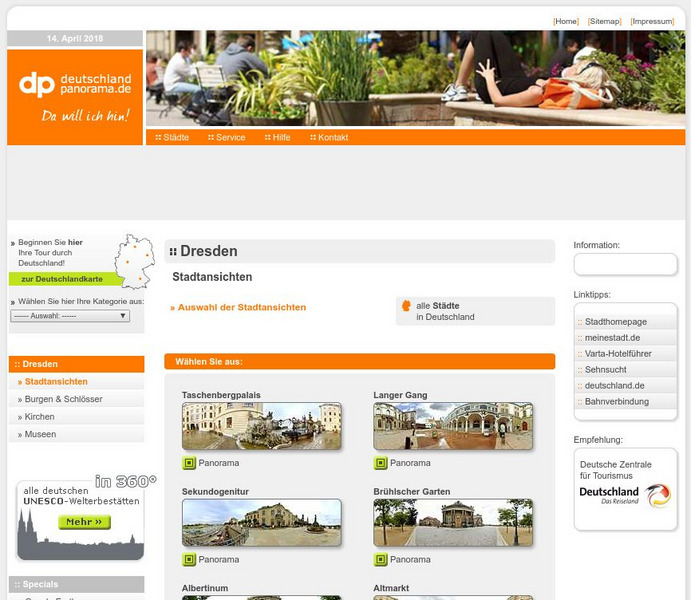 This site gives a truly fabulous view of all the sites to see in Dresden, Germany. Click on the thumbnail pictures and you are directed quickly to full panoramic pictures that you can control. The site includes such places as the...