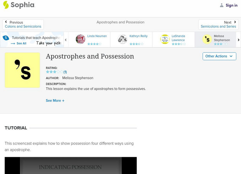 This slideshow lesson focuses on the use of apostrophes in forming possessives; it defines apostrophe and lists its purposes. It lists two types of possessives, singular and plural, explains how to form each including the placement of...