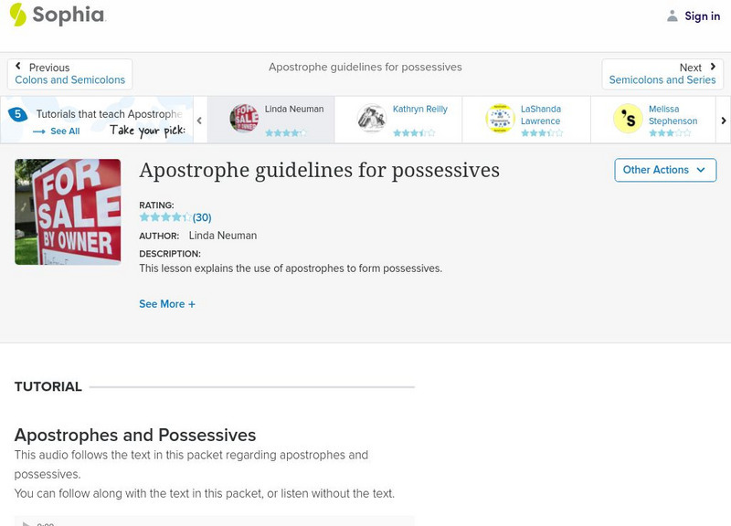 This lesson introduces apostrophes and how they are used. It is 9 of 13 in the series titled "Apostrophes."
