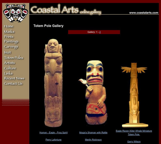 An interesting site filled with pictures of artwork from the Pacific Northwest coast. Great examples of masks, prints, paintings, carvings, totem poles, and much more!