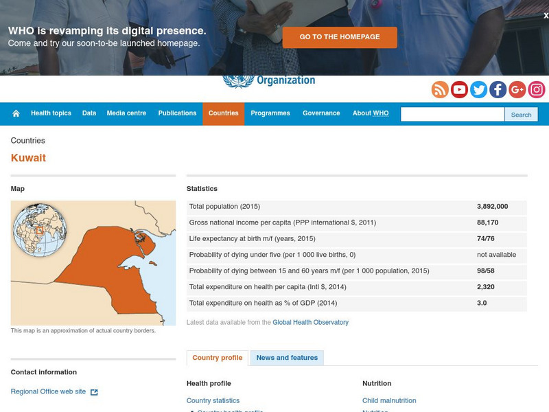 Learn about core health indicators in Kuwait in this World Health Organization country profile, which includes demographic and health information both historic and current. The 'News and features' tab includes articles with some...