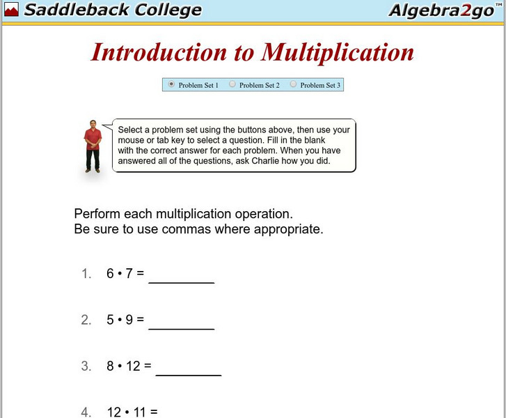 Algebra2go: Introduction to Multiplication Problem Sets