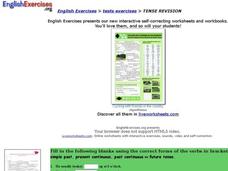 In this verb tenses online interactive worksheet, students read 24 sentences and fill in each blank in each sentence with the correct form of the verb in parentheses next to each blank.