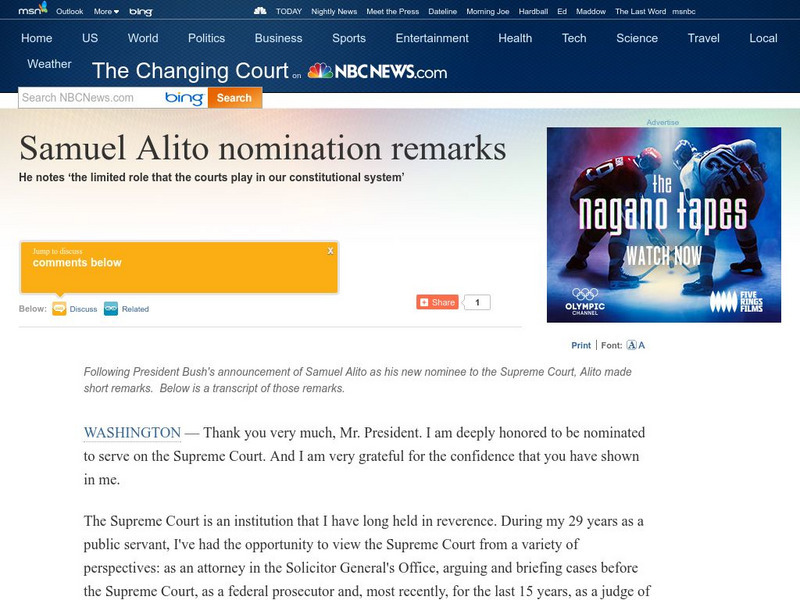 Samuel Alito's remarks after being nominated by President George W. Bush as the replacement for Sandra Day O'Connor on the U.S. Supreme Court.