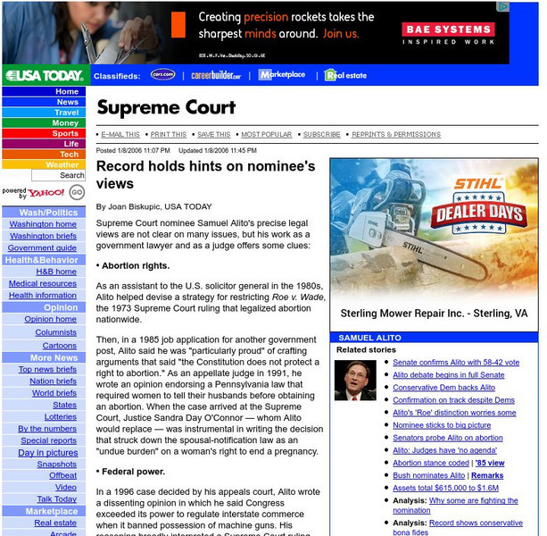 Interesting guide to the viewpoint of Samuel Alito on key issues. (1/8/2006)